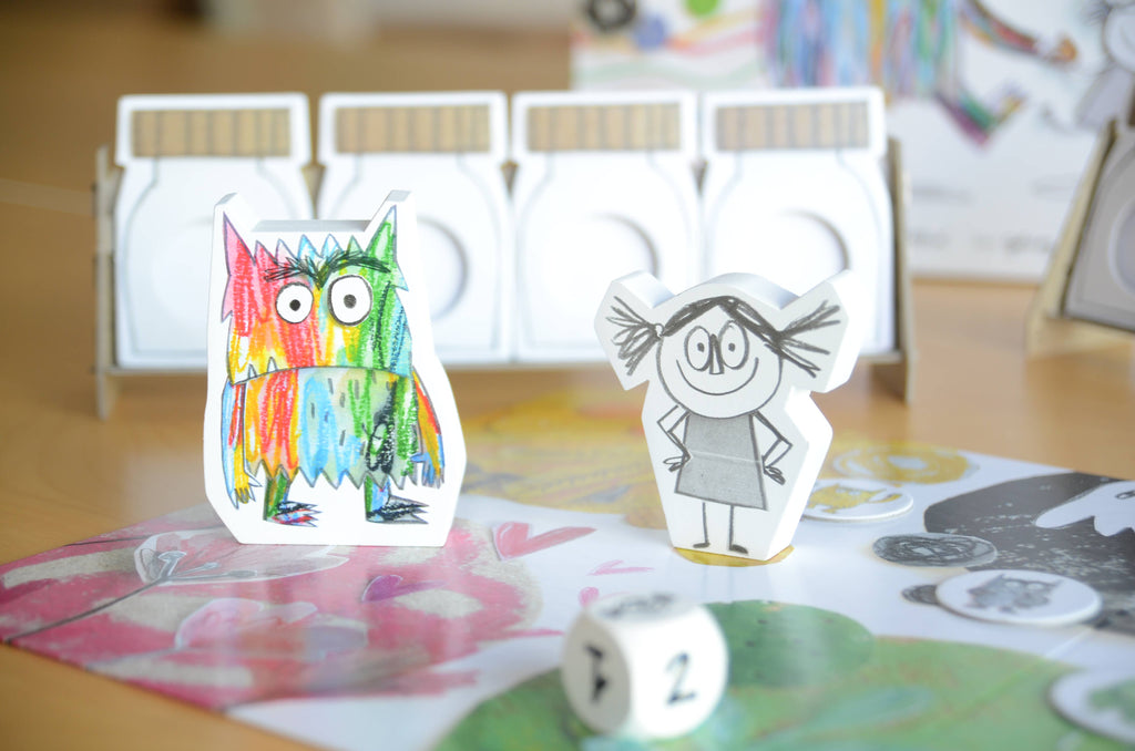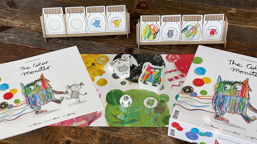 "In The Color Monster game, players work together to help the monster identify his emotions and sort them into different jars corresponding to colors. Once all of the colors and emotions are sorted and the jars are filled, the players win!