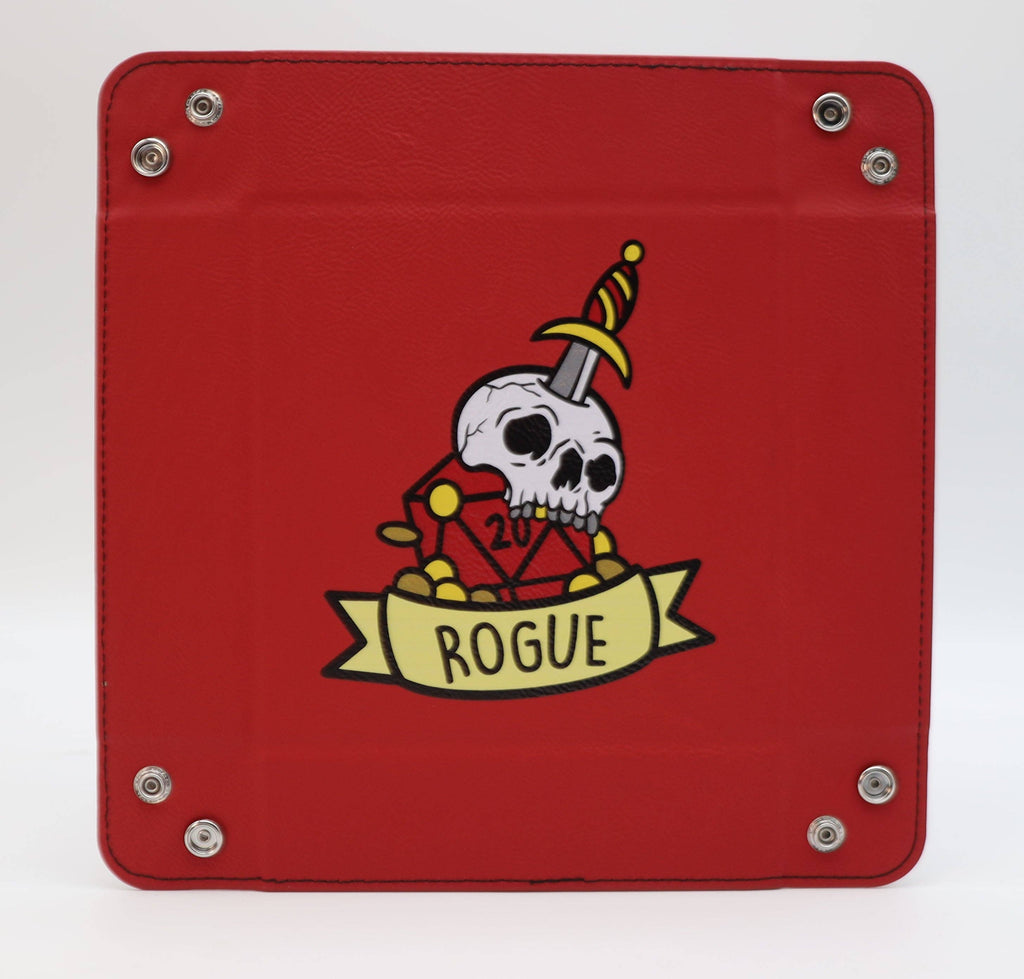 Represent your favorite class with our collapsible dice tray! This dice tray is made with durable leatherette and strong metal snap buttons. It's perfect for the traveling player or Dungeon Master. The tray stays flat and snaps together when you're ready to play!