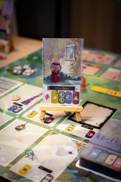 In Canvas, you play as a painter competing in an art competition. Players will collect art cards, layering 3 of them together to create their own unique Painting. Each card contains a piece of artwork as well as a set of icons used during scoring. Icons will be revealed or hidden based on the way players choose to layer the cards making for an exciting puzzle. Paintings are scored based on a set of Scoring cards which will change each game. Once players have created and scored 3 paintings the game ends.