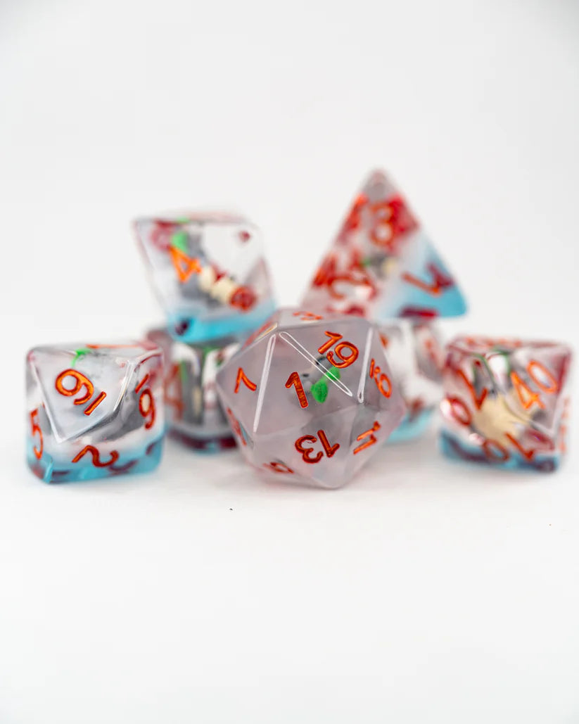 Emberglow Dice: Acrylic Inclusion Set in Glass Vial